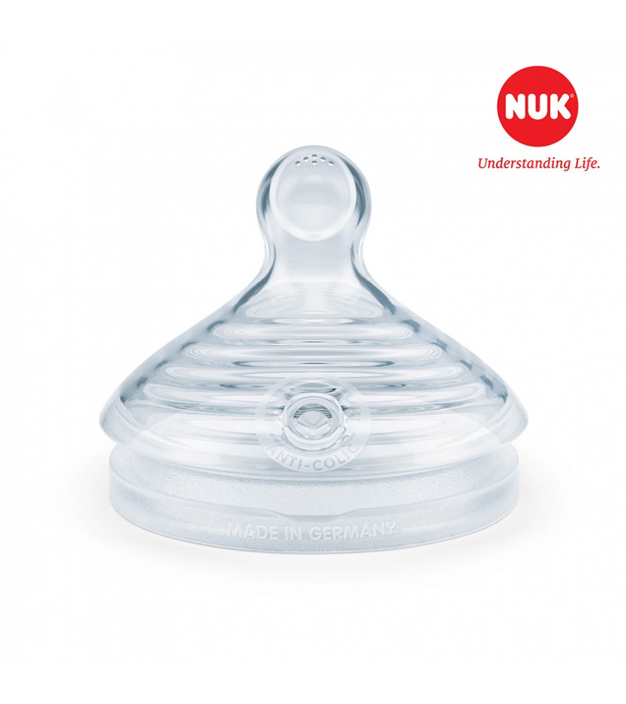 Núm ty vẫn giữ hình dáng dẹt được bác sĩ nha khoa thiết kế độc quyền cho NUK đảm bảo cơ chế cử động tự nhiên của lưỡi trẻ và giữ được khớp ngậm như khi bú mẹ, giúp khung hàm phát triển tạo chỗ cho răng mọc sau này. Cử động của lưỡi linh hoạt được cho là góp phần giúp trẻ tập nuốt tốt hơn khi ăn dặm và phát triển ngôn ngữ khi tập nói. Điều này không thể có được ở núm ti truyền thống.